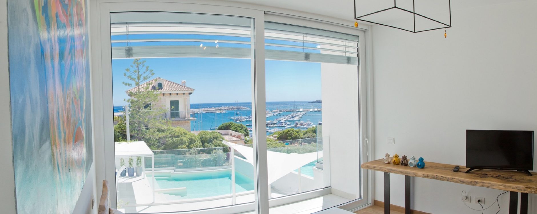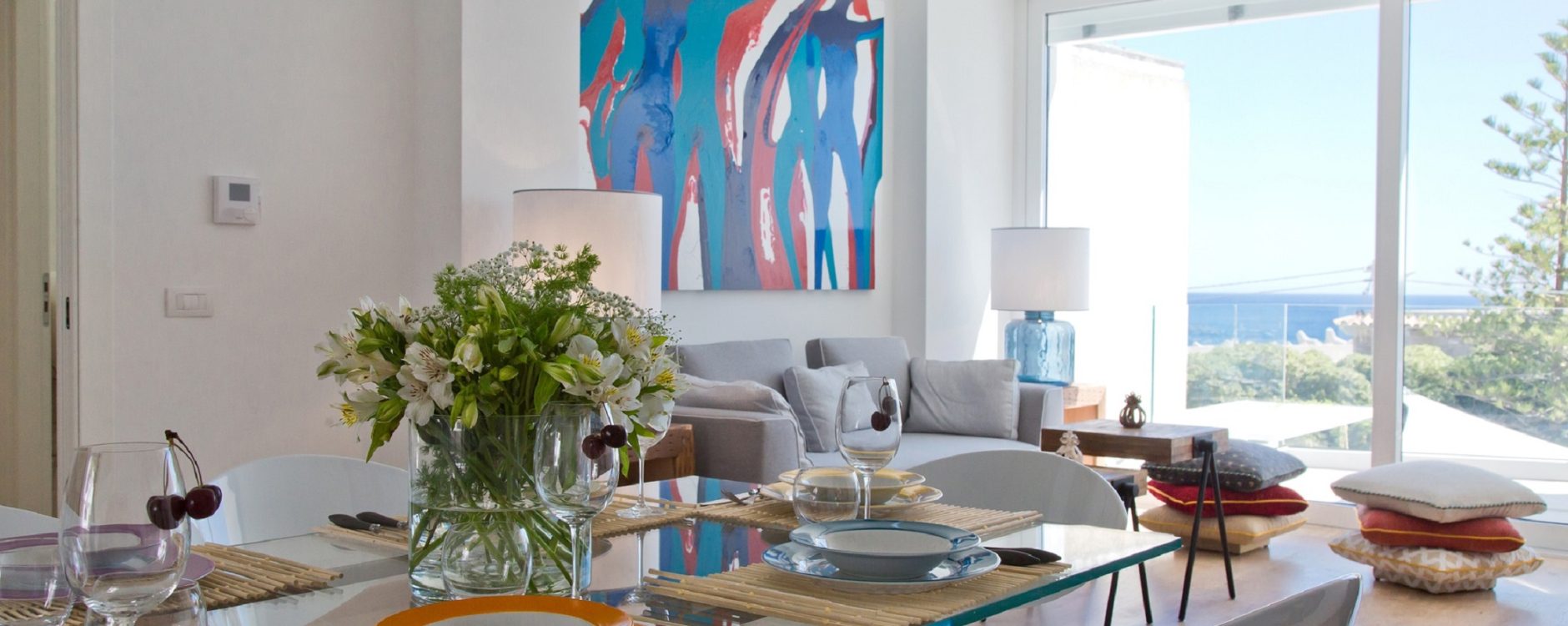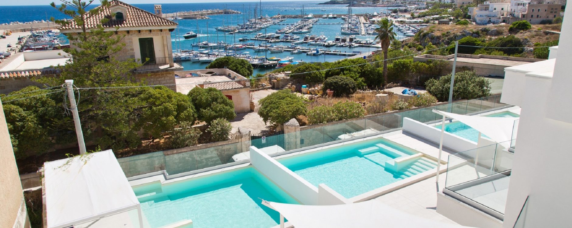 Consisting of 2 double bedrooms, a bathroom, and a spacious living area with sea view, equipped with a fully fitted kitchenette. The living room and the master bedroom overlook the bay of Leuca and enjoy a breathtaking view, as does the solarium, which is accessible via a private elevator inside the house. The solarium is equipped with a canopy, sun loungers, and a private mini pool of the infinity jacuzzi type overlooking the horizon.