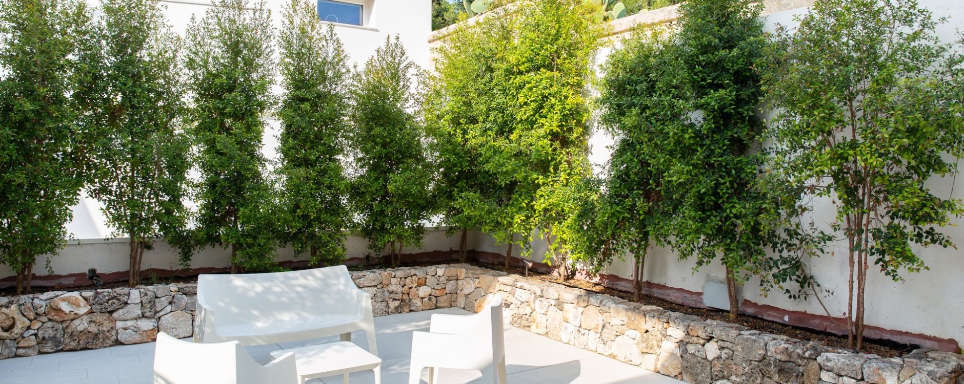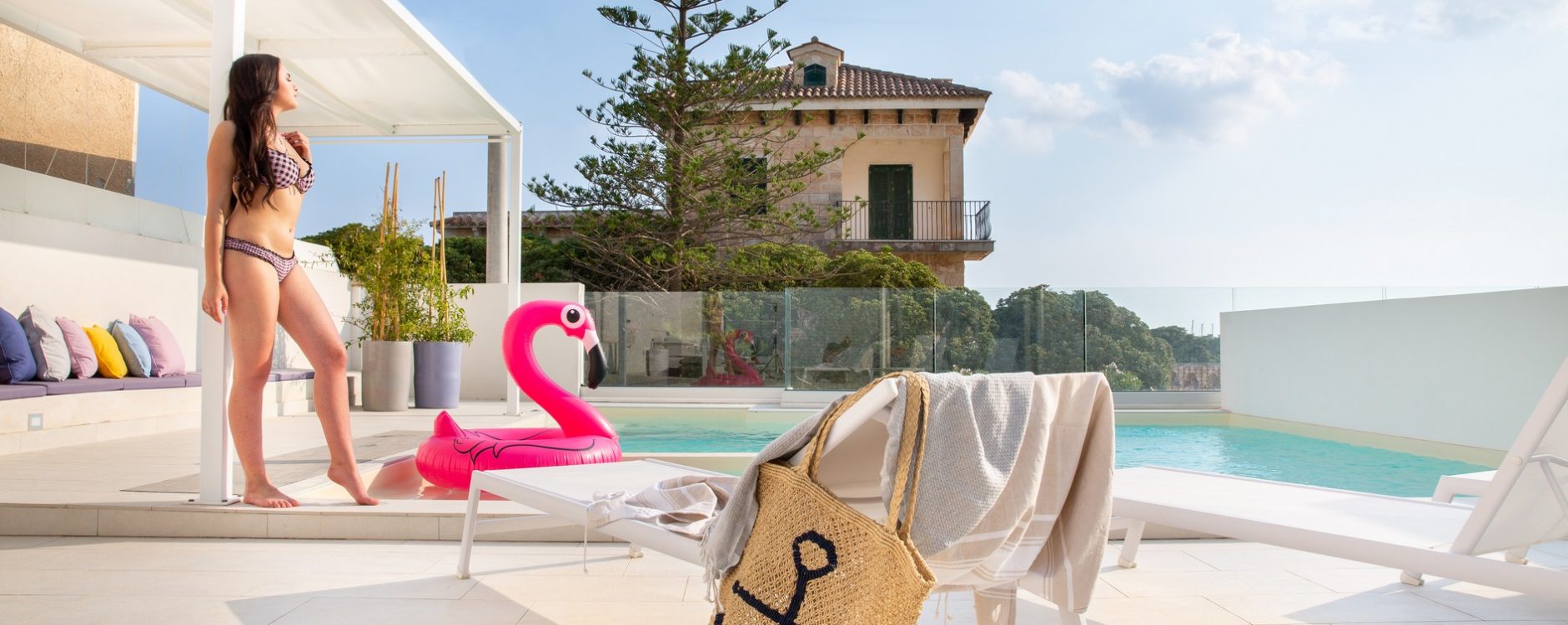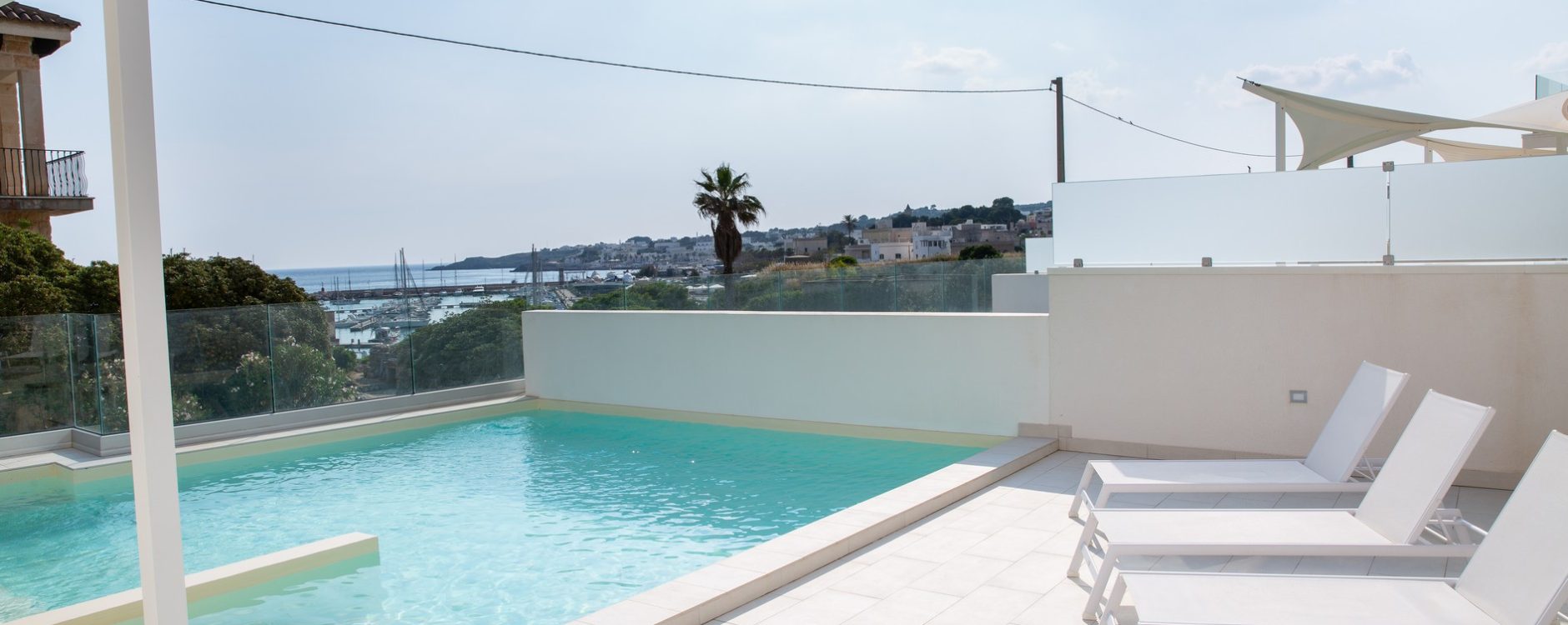 Composto da due camere da letto matrimoniali, due servizi ed ampio living con angolo cottura attrezzato. Nello spazio esterno, affacciato sul mare, una piscina privata, con vista su Leuca e il porto, di circa 20 mq con anche zona idromassaggio. A completare la funzionalità degli spazi esterni: tettoia con divano comodo, tavolo e sedie e divaneria a bordo piscina. Tutti gli arredi i quadri sono pezzi unici, quasi sempre prodotti artigianalmente.