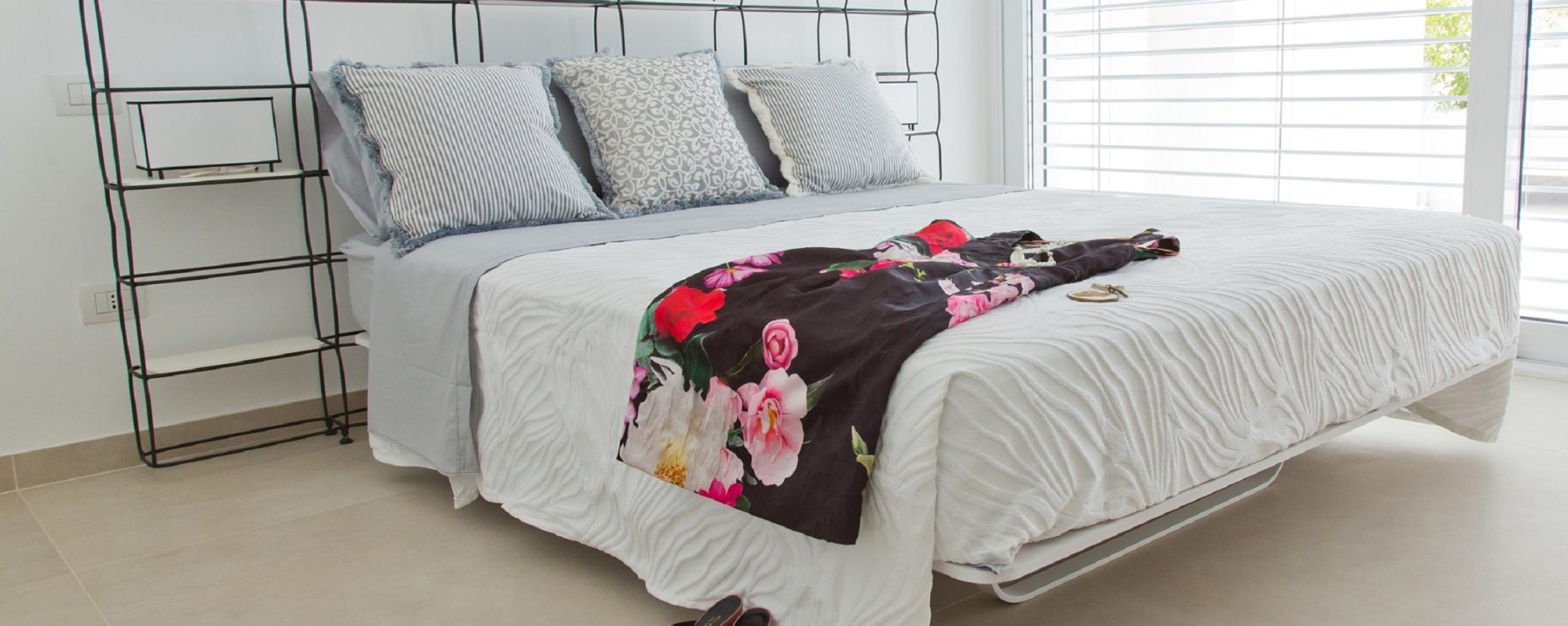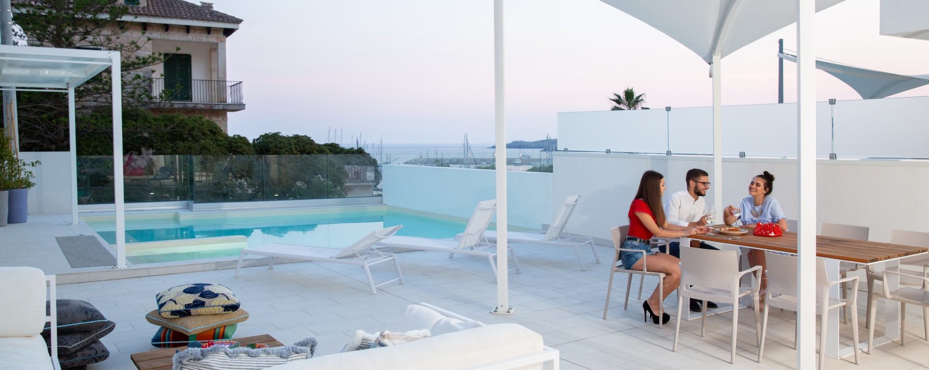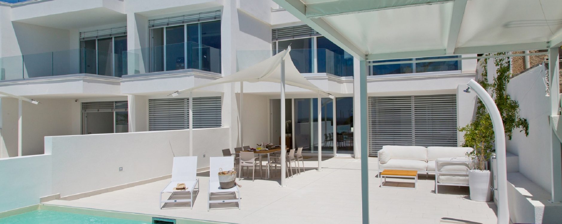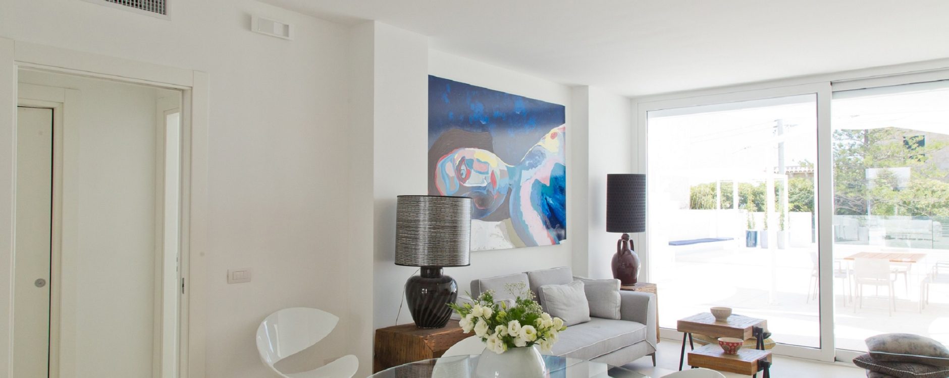 Composto da due camere da letto matrimoniali, due servizi ed ampio living con angolo cottura attrezzato. Nello spazio esterno, affacciato sul mare, una piscina privata, con vista su Leuca e il porto, di circa 20 mq con anche zona idromassaggio. A completare la funzionalità degli spazi esterni: tettoia con divano comodo, tavolo e sedie e divaneria a bordo piscina. Tutti gli arredi i quadri sono pezzi unici, quasi sempre prodotti artigianalmente.